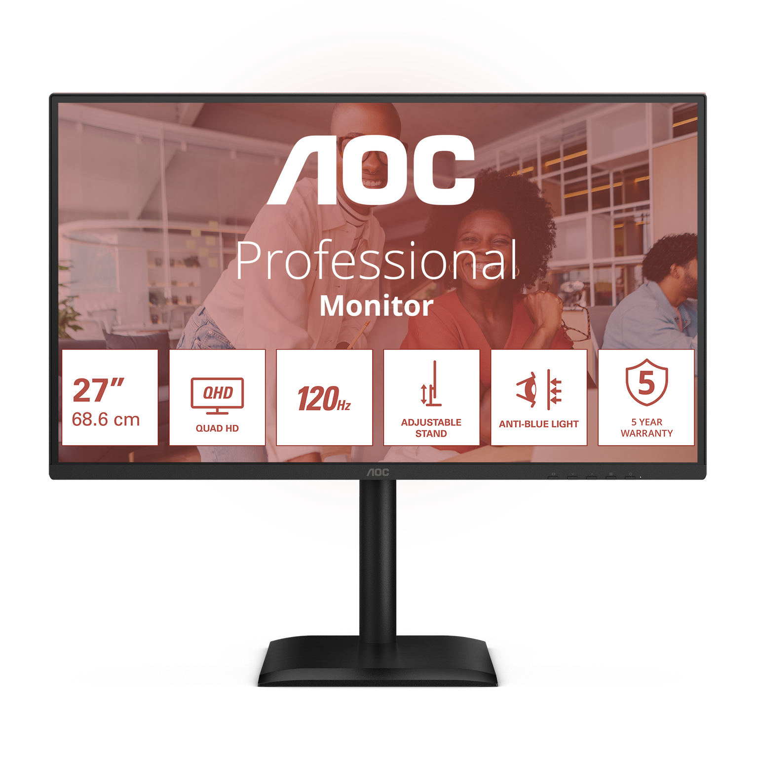 MONITOR 27 AOC Q27E4CV LED IPS 2560x1440@120Hz 350cd 4ms HDMI/DP USB3.0 PD-90W altavoces-4W altura-regulable giratorio filtro-luz-azul VESA100 negro